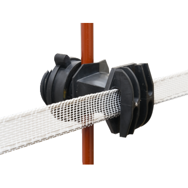 Adjustable plastic tape insulator for all metal posts. Suitable for tape up to 20mm.