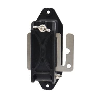 Clamp insulator for maintaining tension within the fence line, terminating and joining multiple lines of tape. Can be securely screwed into any wooden post. The insulator can also be used to provide a gate hook. Suitable for tape up to 40mm.