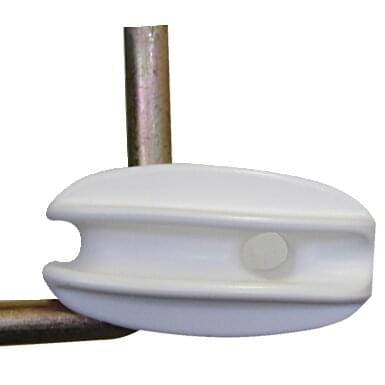 Other information: The insulators primary role is to securely hold the fence line without power leaking from post to ground. A well designed insulator will hold the line securely so that it will not wear the tape, rope or wire when buffeted around by the elements or will allow the line to freely pass through without the impedance of sharp edges. Corner insulators and end tensioners are designed to take the strain of a tensioned fence line through changes of direction and at terminations. Using a wooden post with this type of insulator in temporary situations facilitates the effective tensioning of the line and allows temporary plastic posts to be spaced at greater distances and will extend the life of the tape or wire.