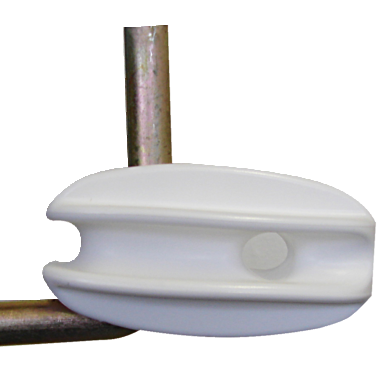 Other information: The insulators primary role is to securely hold the fence line without power leaking from post to ground. A well designed insulator will hold the line securely so that it will not wear the tape, rope or wire when buffeted around by the elements or will allow the line to freely pass through without the impedance of sharp edges. Corner insulators and end tensioners are designed to take the strain of a tensioned fence line through changes of direction and at terminations. Using a wooden post with this type of insulator in temporary situations facilitates the effective tensioning of the line and allows temporary plastic posts to be spaced at greater distances and will extend the life of the tape or wire.