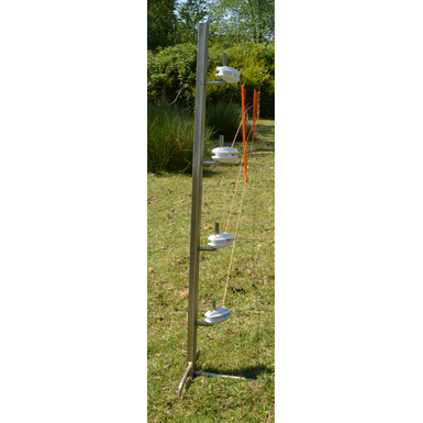 Heavy duty 120cm angle steel post used for corners or to secure the ends of a fence line. Includes strainer insulators for connecting wire and rope and to prevent from discharging. Triple pronged base for added stability and more secure ground fixing.