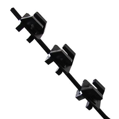 Other information: The insulators primary role is to securely hold the fence line without power leaking from post to ground. A well designed insulator will hold the line securely so that it will not wear the tape, rope or wire when buffeted around by the elements or will allow the line to freely pass through without the impedance of sharp edges.