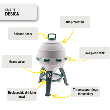 ✔ Ideal for up to 25 chickens: With a generous capacity of 25 liters, the drinker is suitable for both indoor and outdoor use.