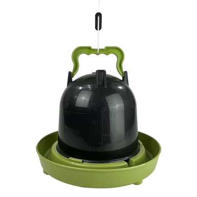 High-quality, gravity-fed drinker for ground or hanging use. Made from 100% recycled material, this 3 litre drinker is a twist lock design with a heavy duty, ergonomically designed carrying handle that doubles as a hanger. The drinker is very easy to use and clean and is suitable for most poultry and game birds.